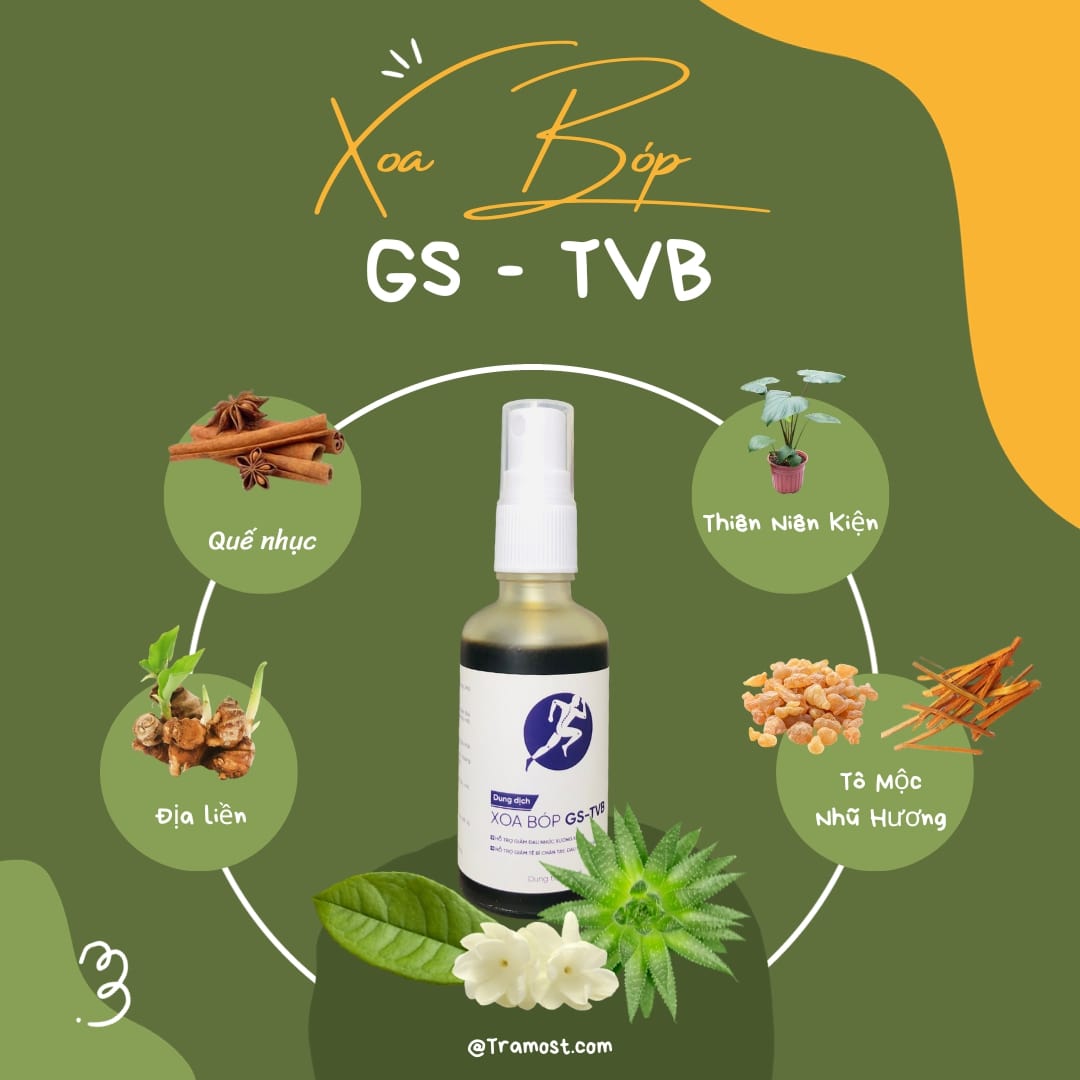 Dung dịch xoa bóp GS-TVB, với thành phần từ các loại thảo dược thiên nhiên, là lựa chọn tốt giúp giảm đau nhức xương khớp, mỏi cơ bắp và làm ấm cơ thể hiệu quả.