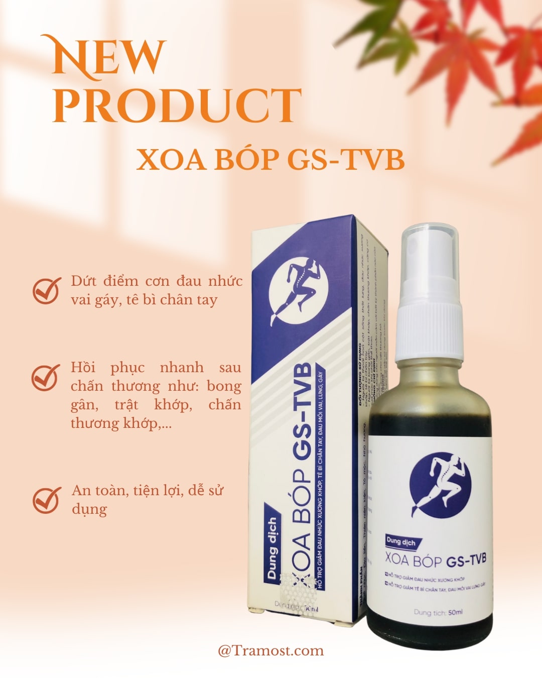 Hãy chăm sóc xương khớp của bạn một cách tối ưu với dung dịch xoa bóp GS-TVB từ Tra Most. Đừng để đau nhức xương khớp làm phiền cuộc sống hàng ngày của bạn nữa. Hãy thử ngay và cảm nhận sự khác biệt! Đặt hàng ngay hôm nay!